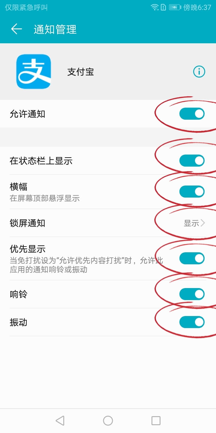 在系统「设置」-「应用程序」- 找到 OK码支付收款、微信、支付宝 - 「通知」开启所有通知。