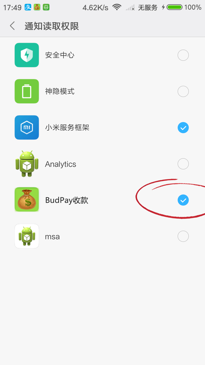 注意:必须开启 OK码支付 APP 的通知读取权限,否则无法读取支付通知。