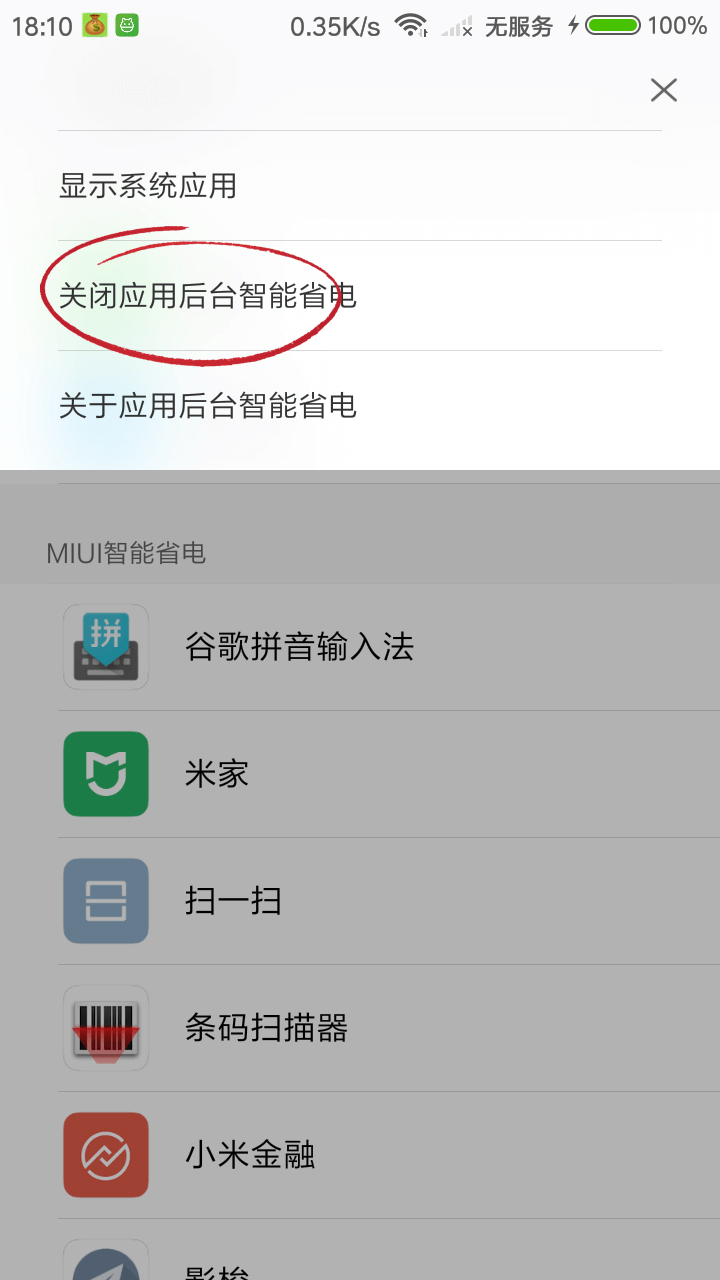在系统「设置」-「电量和性能」-「神隐模式」- 「应用配置」- 右上角三个点「关闭应用后台智能省电」。