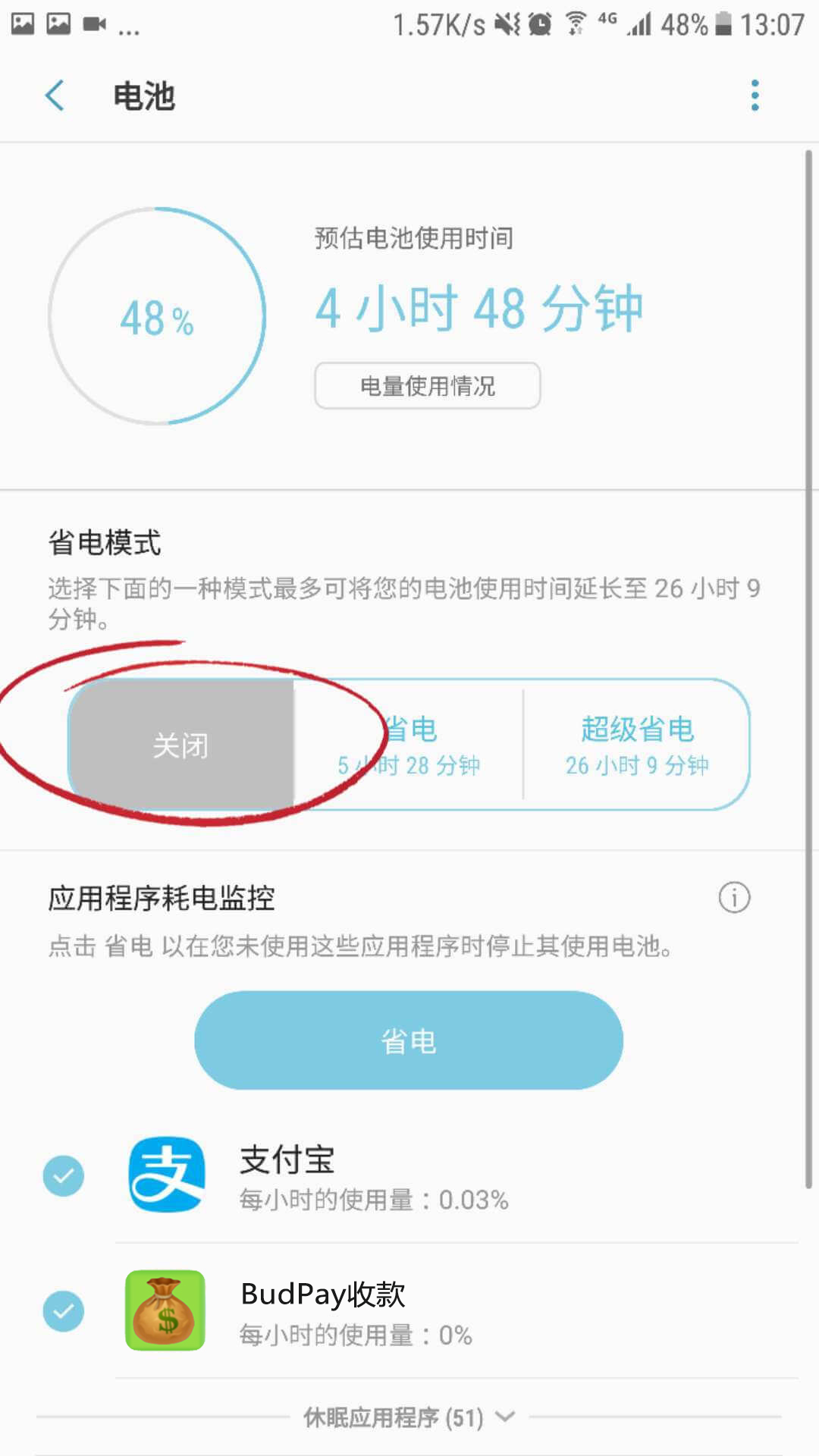在系统「设置」-「常规设置」-「电池」- 「省电模式」- 点击关闭。